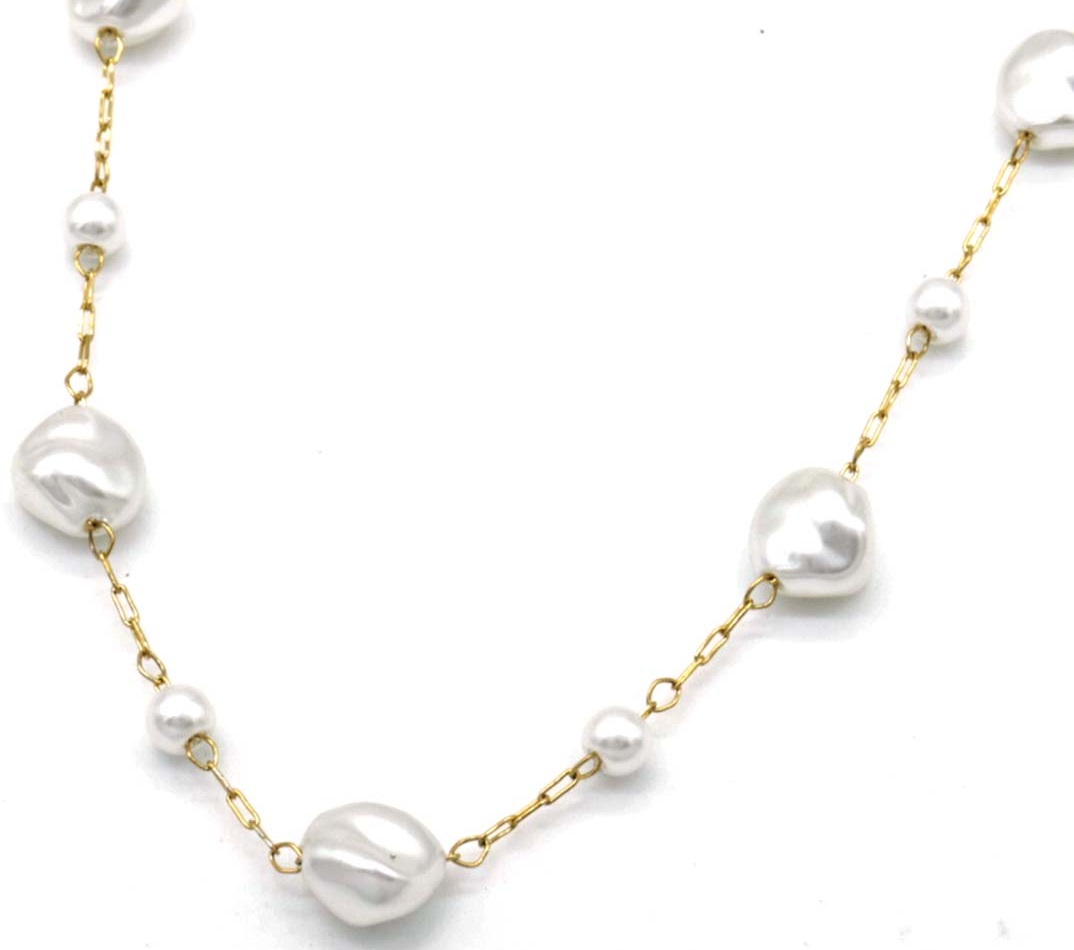 A-A11.2 N221-385G No. 5 S. Steel Necklace Pearls