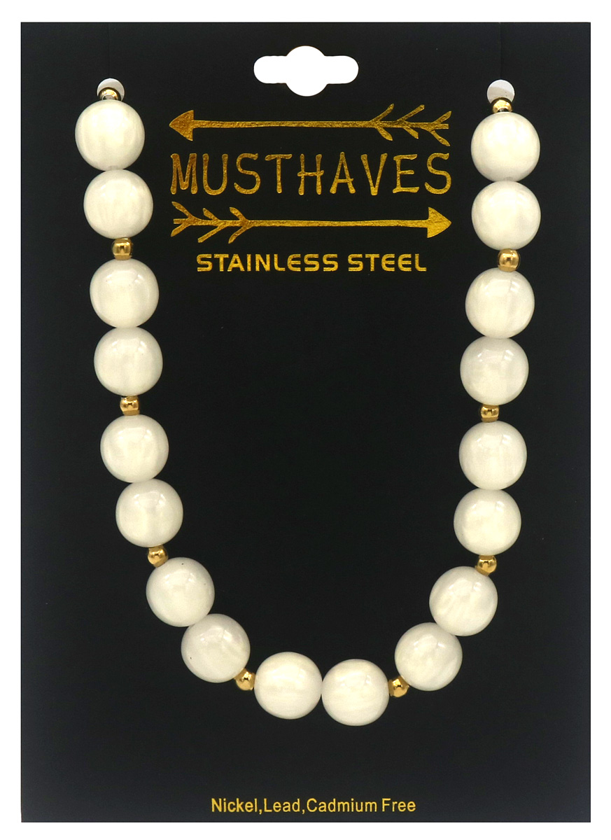 Produktinformationen "A-B13.1 N1144-008-1 S. Steel Necklace 10mm Beads 40-45cm White"