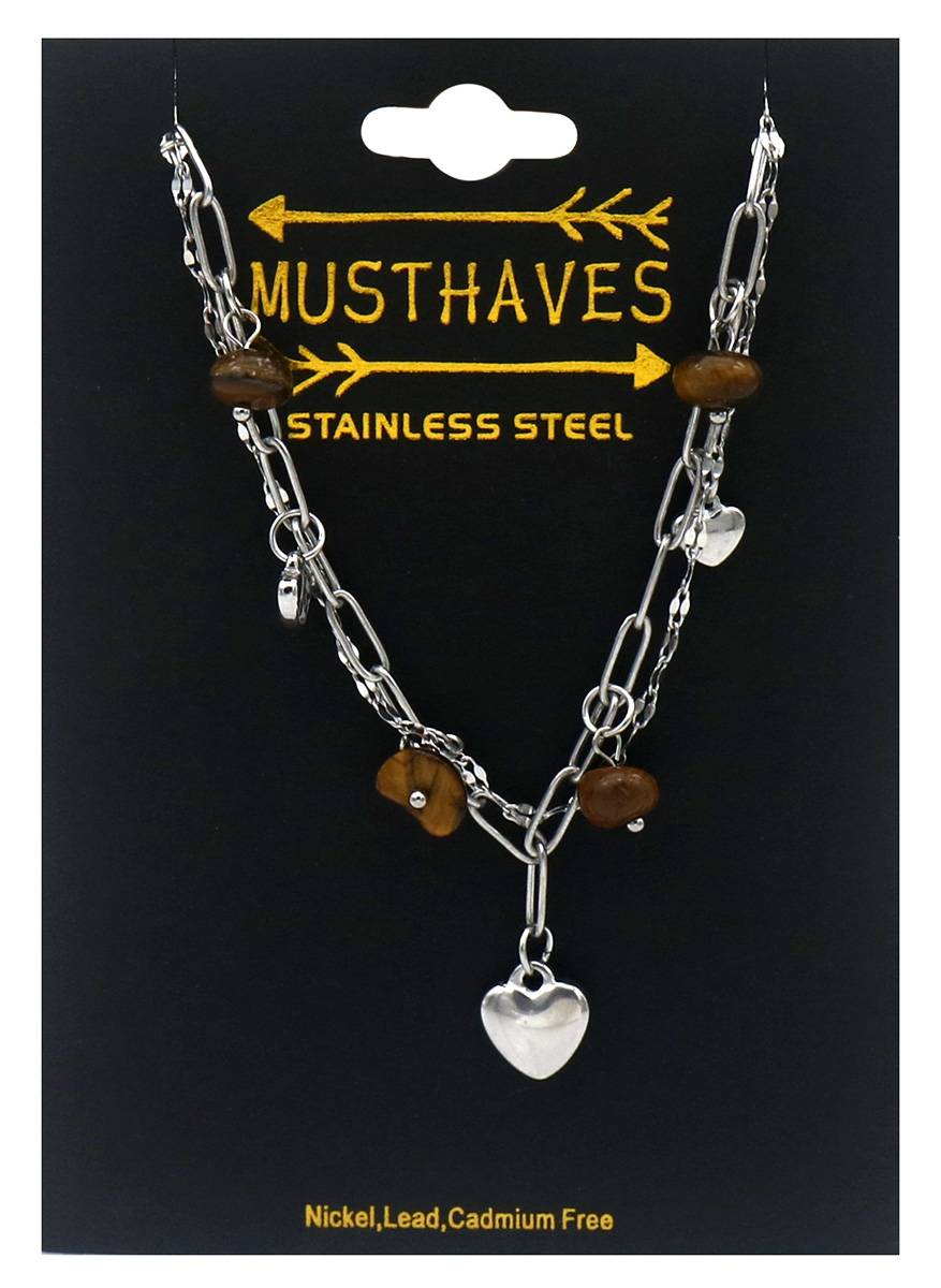 A-B22.3 B2583-032S-3 S. Steel Bracelet Hearts - Stones 16-21cm Brown