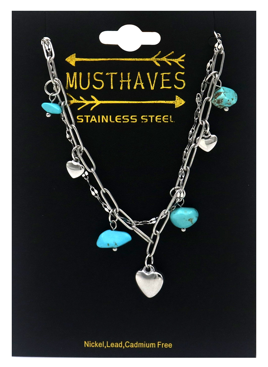 A-C23.2 B2583-032S-2 S. Steel Bracelet Hearts - Stones 16-21cm Blue