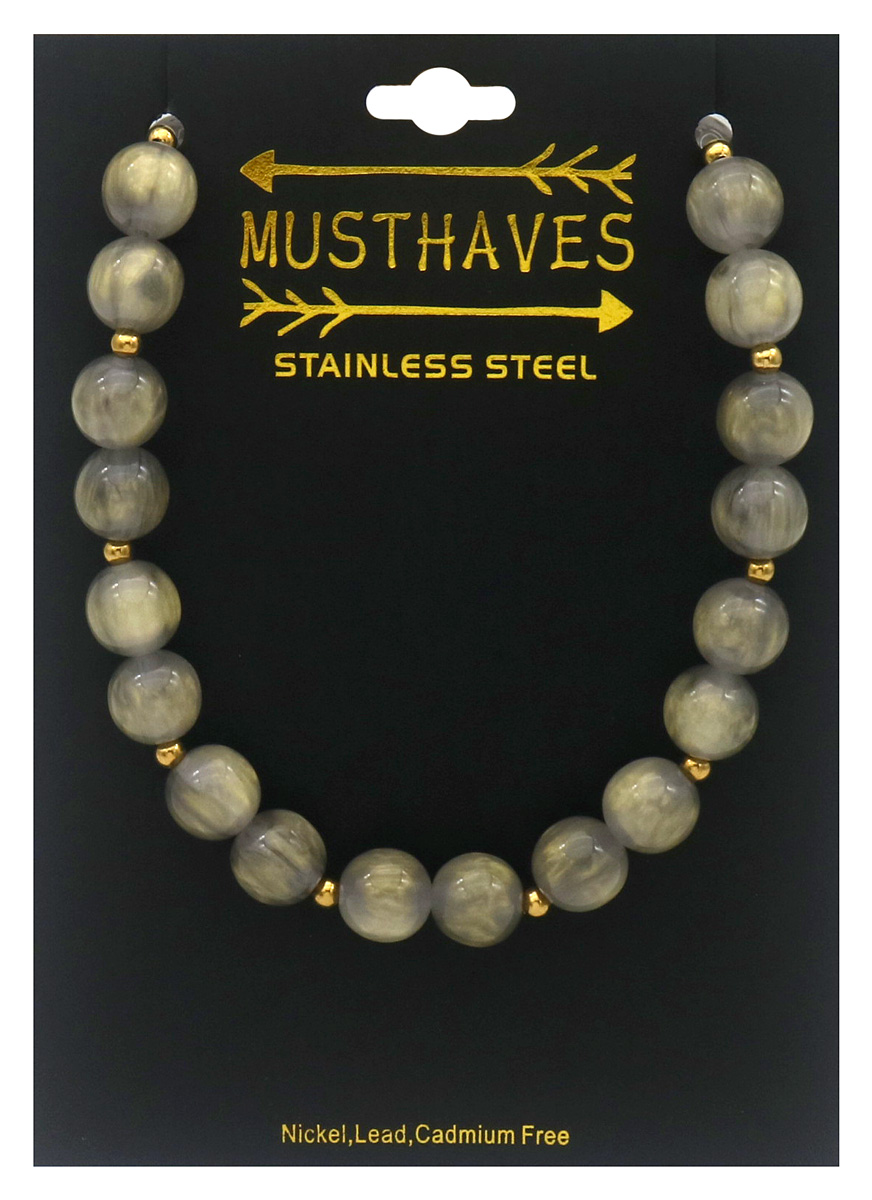 Produktinformationen "A-C26.1 N1144-008-7 S. Steel Necklace 10mm Beads 40-45cm Grey"