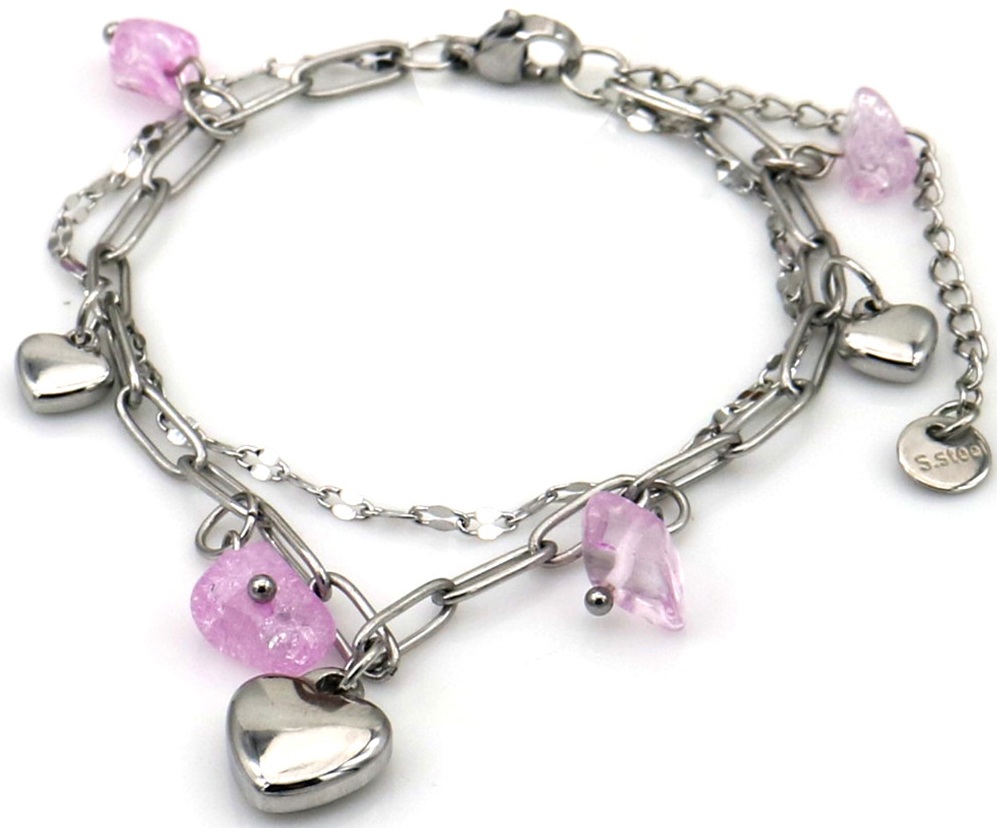 A-D23.2 B2583-032S-1 S. Steel Bracelet Hearts - Stones 16-21cm Pink