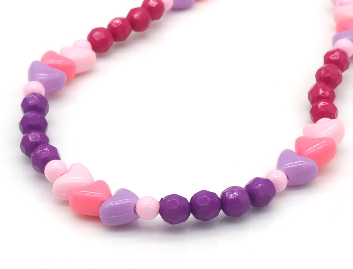 A-E1.2 K3-ZSN030 Bijoux Ketting Roze-Paars traf Hartjes