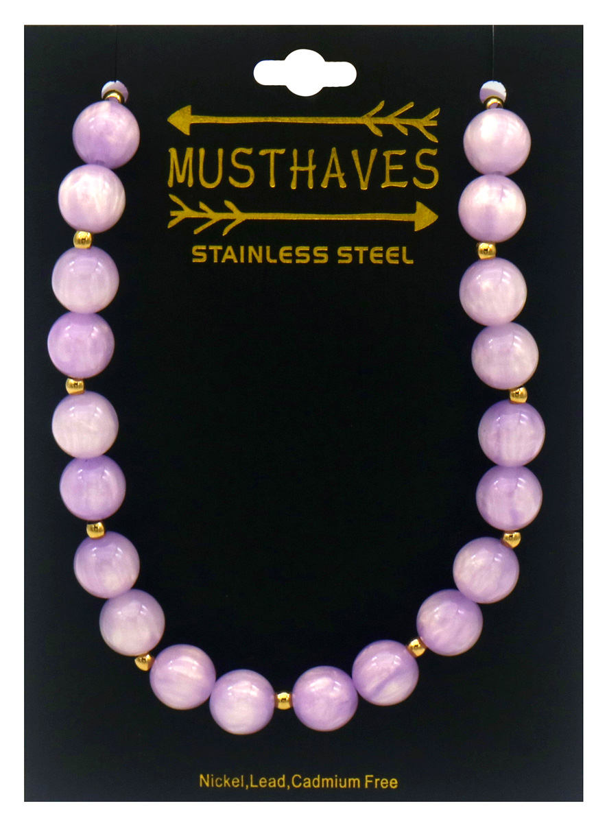 Produktinformationen "A-E26.1 N1144-008-2 S. Steel Necklace 10mm Beads 40-45cm Purple"