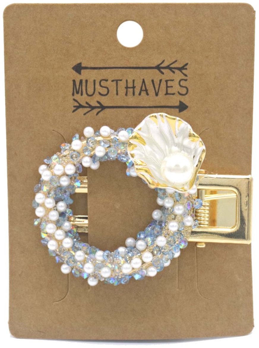 A-F23.1 H814-001-2 Hair Clip 5x4cm Pearls Blue