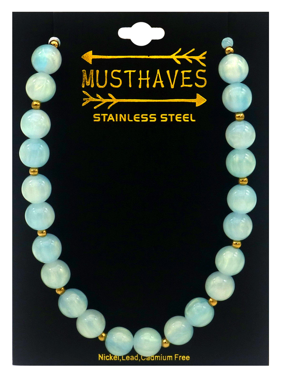 A-F25.1 N1144-008-5 Edelstahl-Halskette, 10 mm Perlen, 40–45 cm, Blau
