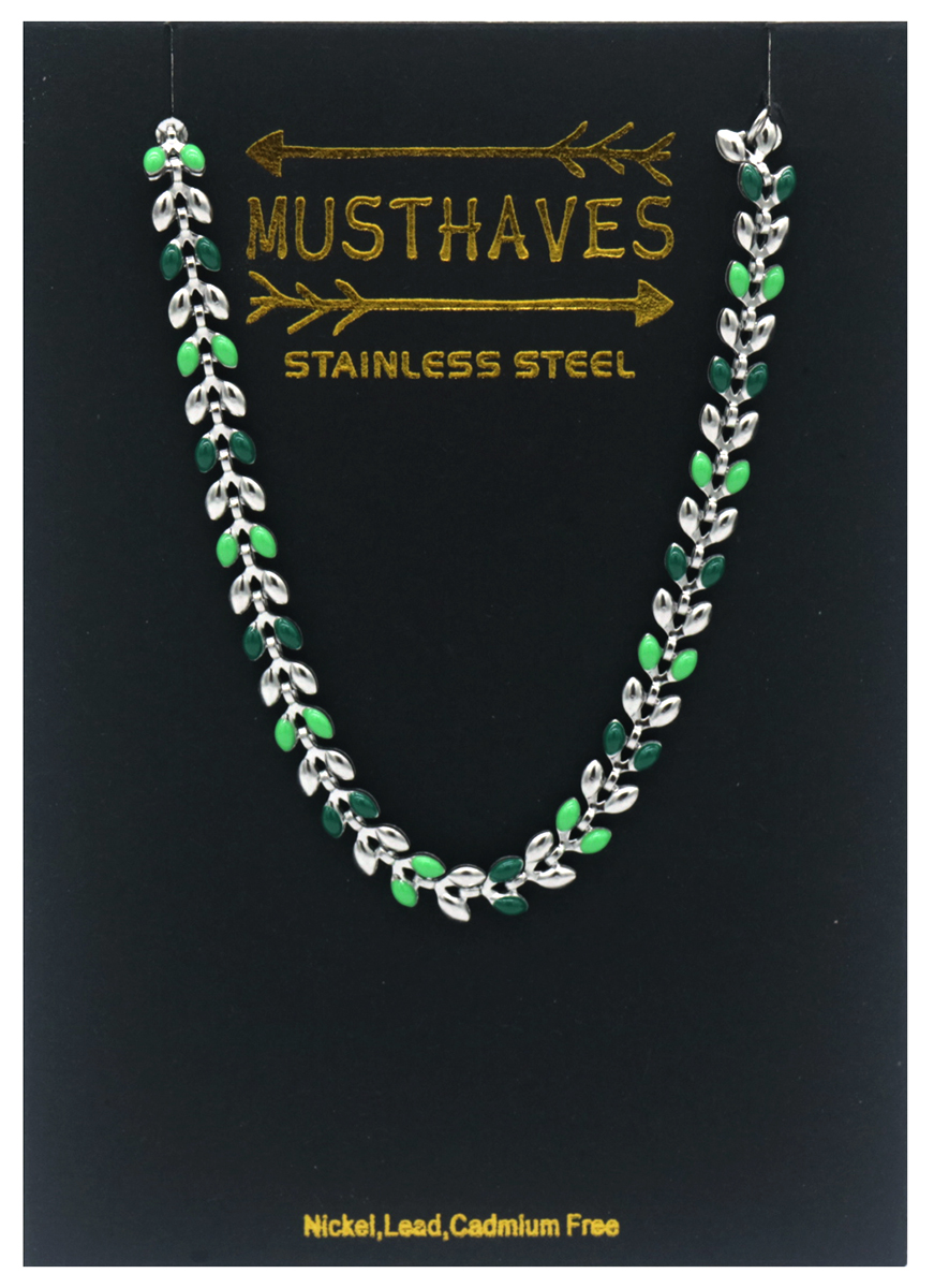 B-A17.3 B835-034S S. Steel Bracelet Leaves Green