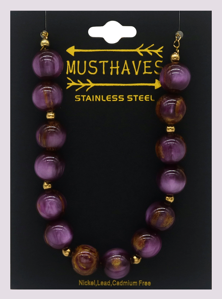 B-A22.3 B1144-004-3 S. Steel Bracelet Acrylic Beads Purple