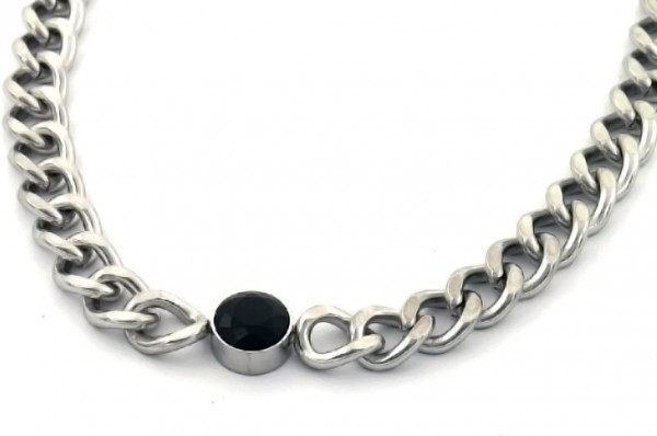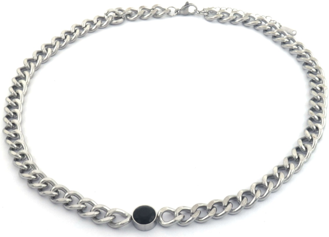 B-B18.3 N088-062S S. Steel Necklace 39-44cm Black CZ