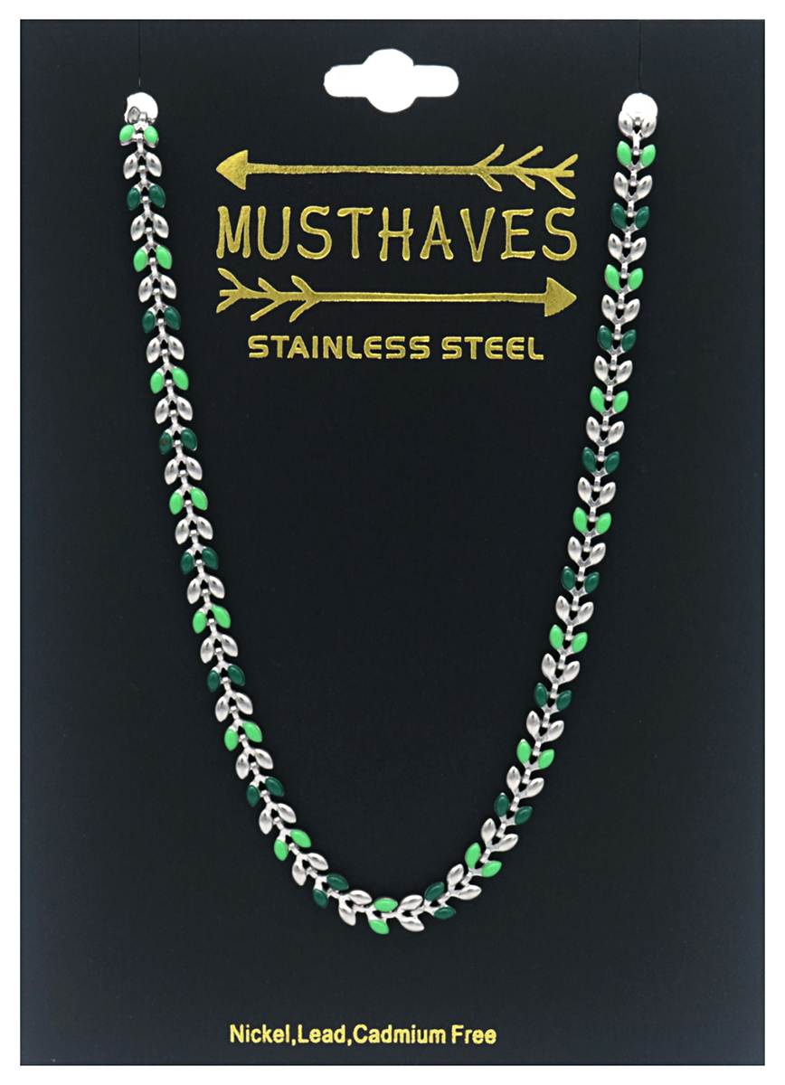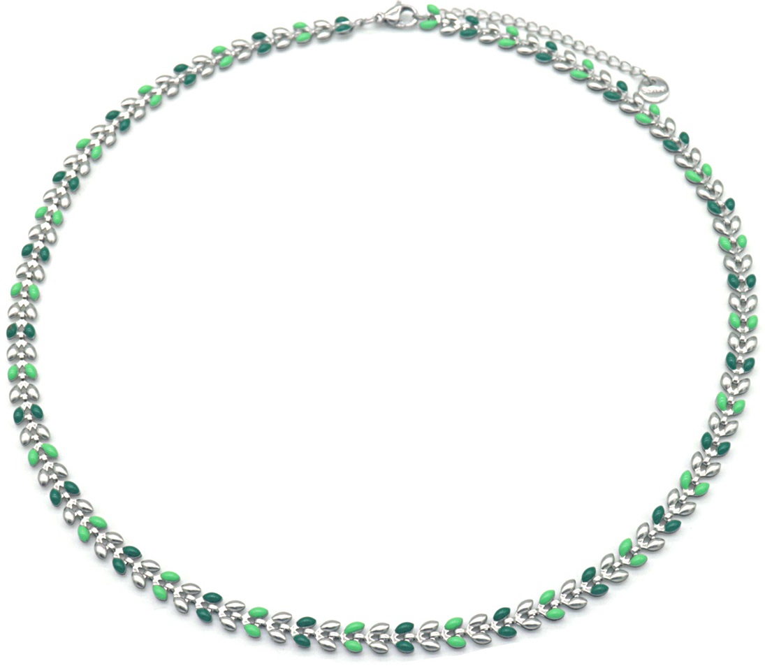 B-B2.2 N835-026S S. Steel Necklace Leaves Green