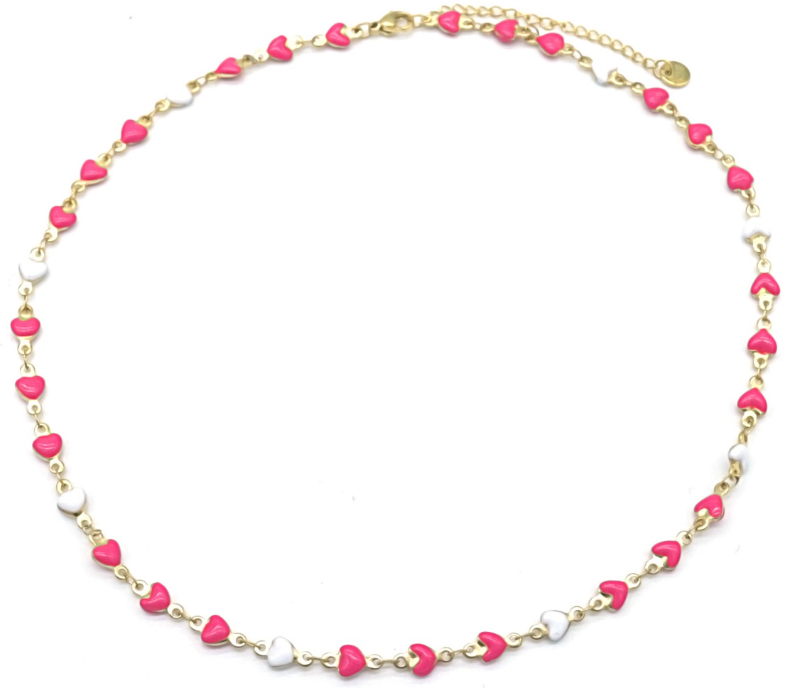 B-C1.1 N835-028G S. Steel Necklace Hearts Pink