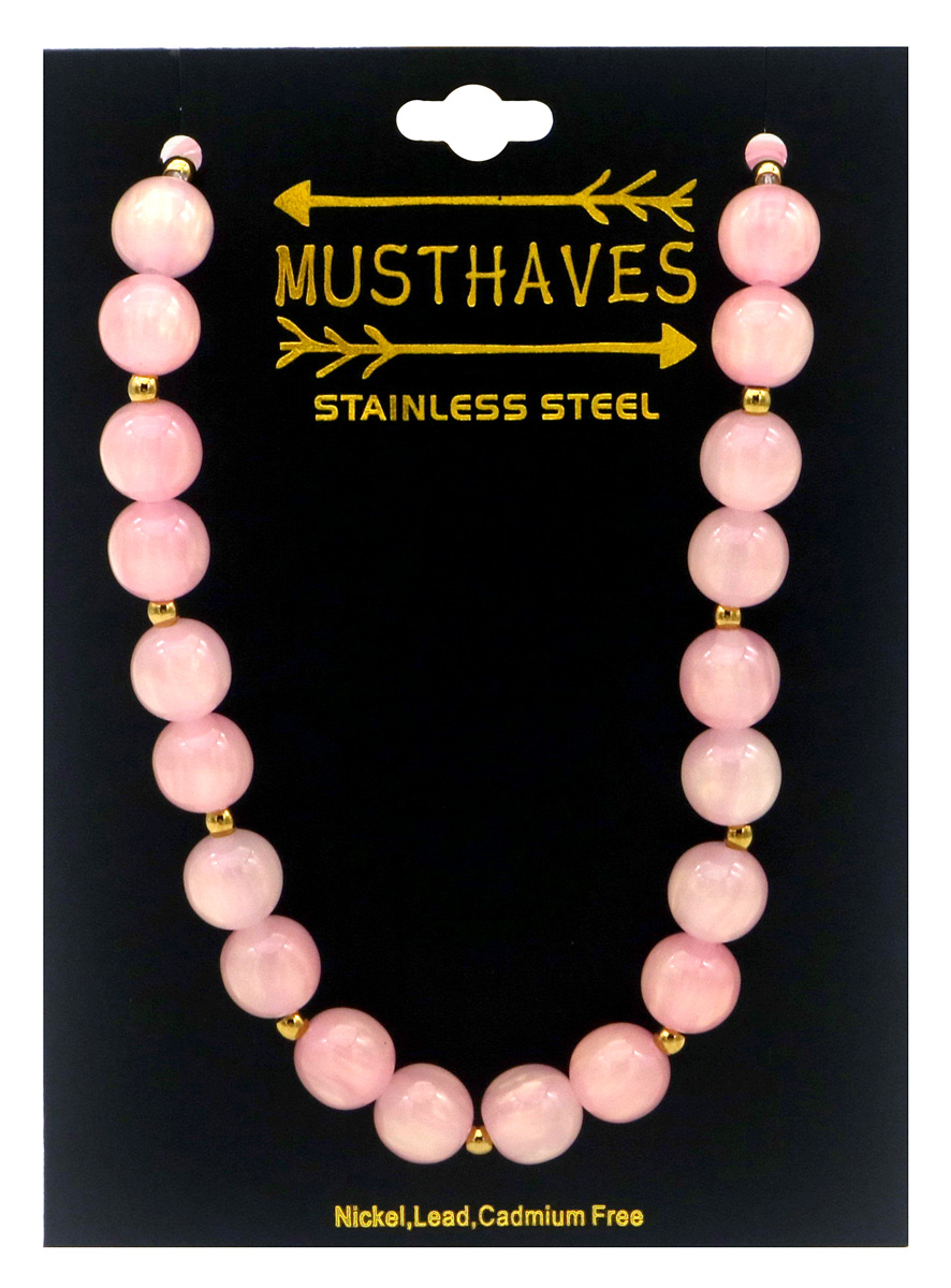 Produktinformationen "B-C13.1 N1144-008-6 S. Steel Necklace 10mm Beads 40-45cm Pink"