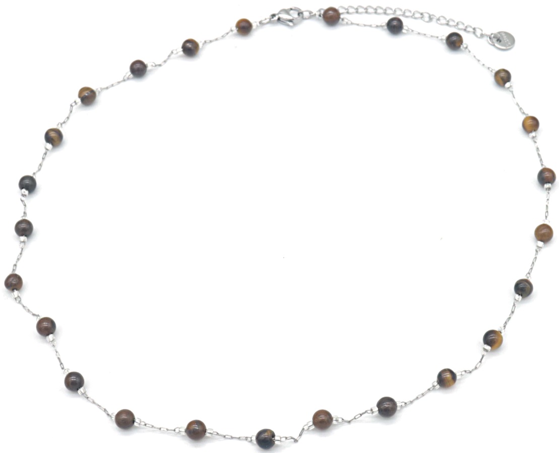 B-C2.2 N835-025S S. Steel Necklace Tiger Eye