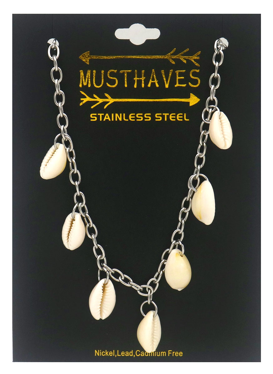 B-E12.2 N25106-021S Edelstahl-Halskette mit Muscheln, 40–45 cm