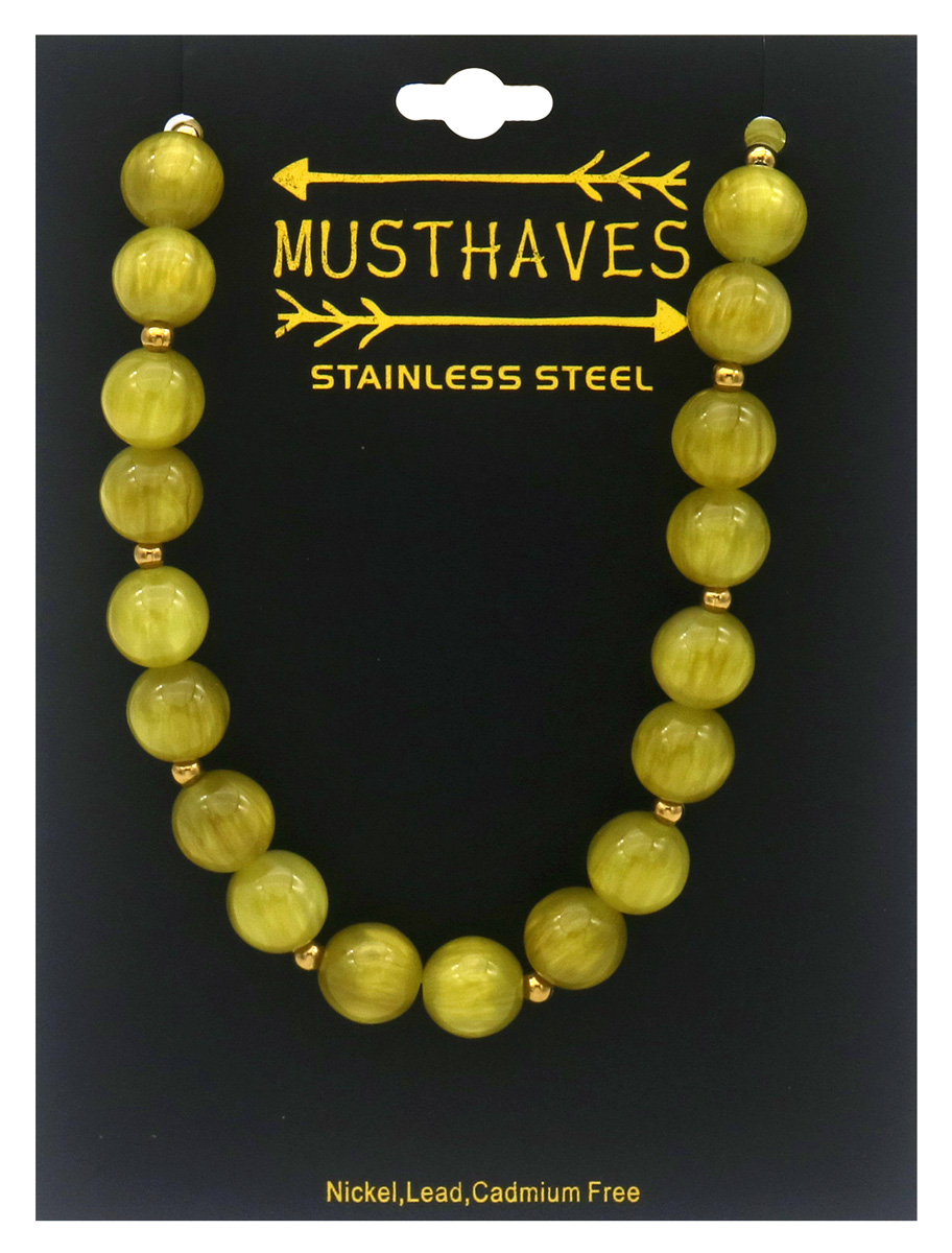Produktinformationen "B-E26.1 N1144-008-3 S. Steel Necklace 10mm Beads 40-45cm Green"