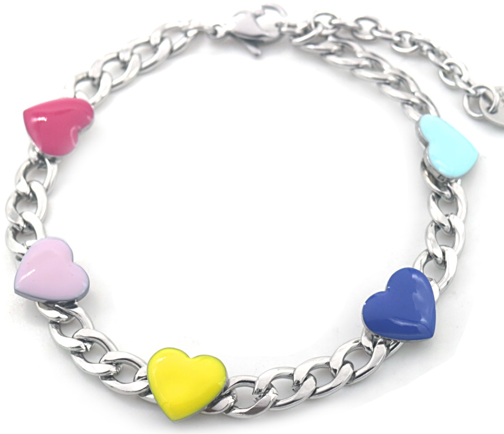 B-E6.2 B835-039S S. Steel Bracelet Hearts Multi
