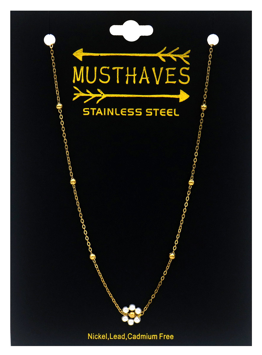 B-E9.1 N2616-010G Edelstahl-Halskette mit Blumenperlen, 40–45 cm