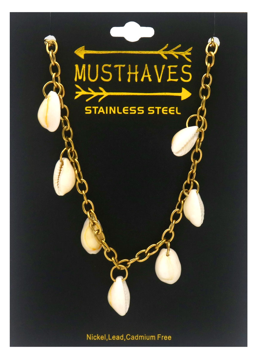 B-F25.1 N25106-021G Halskette aus Edelstahl mit Muscheln, 40–45 cm