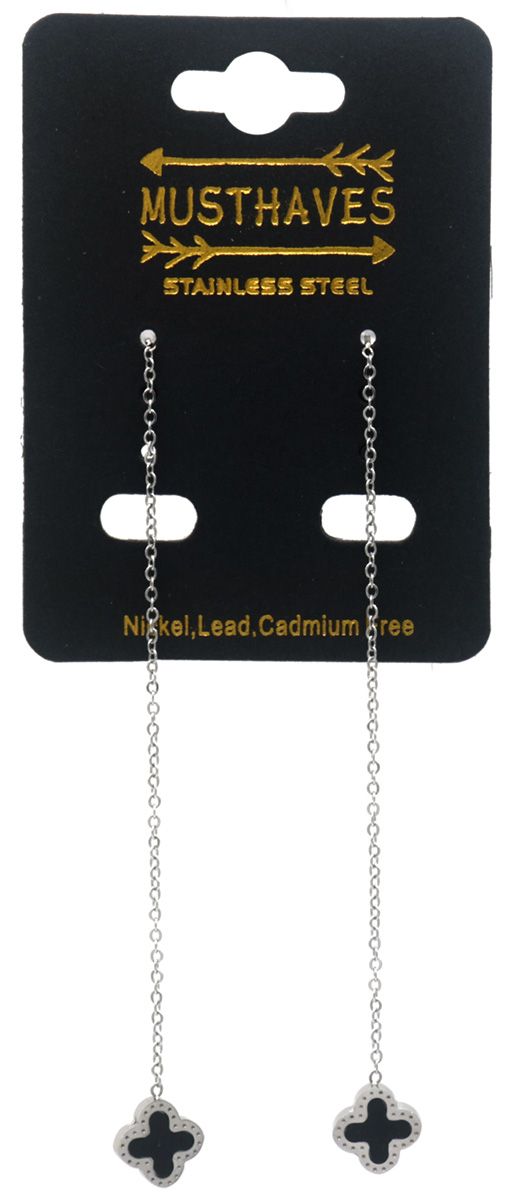 B-F5.1 E089-004S S. Steel Pull Through Earrings Black