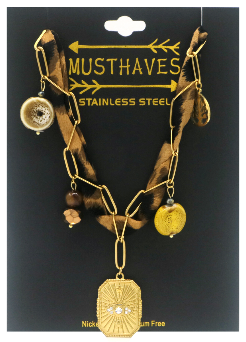 C-A22.3 N098-005 S. Steel Necklace Loopard Fabric with Charms