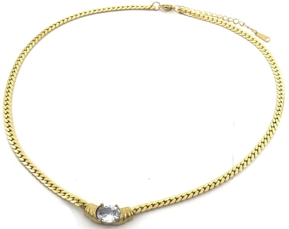 C-D18.3 N089-015G S. Steel Necklace CZ