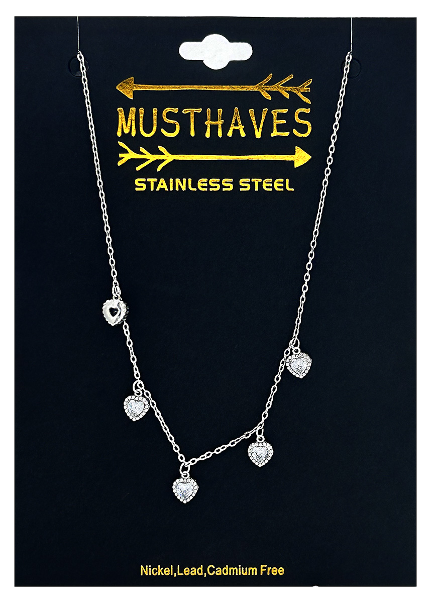 C-E5.3 N1131-004S S. Steel Necklace Hearts Crystals 40-45cm