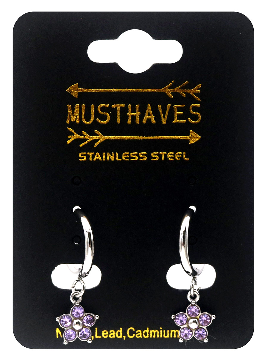 C-E7.3 E2612-208S-3 S. Steel Earrings Crystal Flower 2.5x1.2cm Purple
