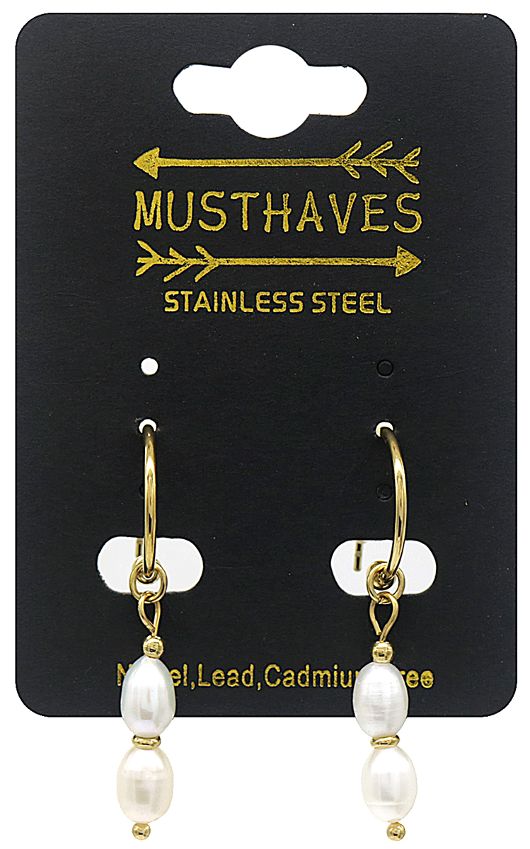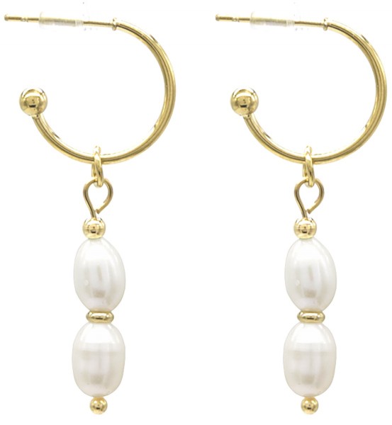 D-A11.1 E031-056G S. Steel Earrings Freshwater Pearls 1.5x4cm