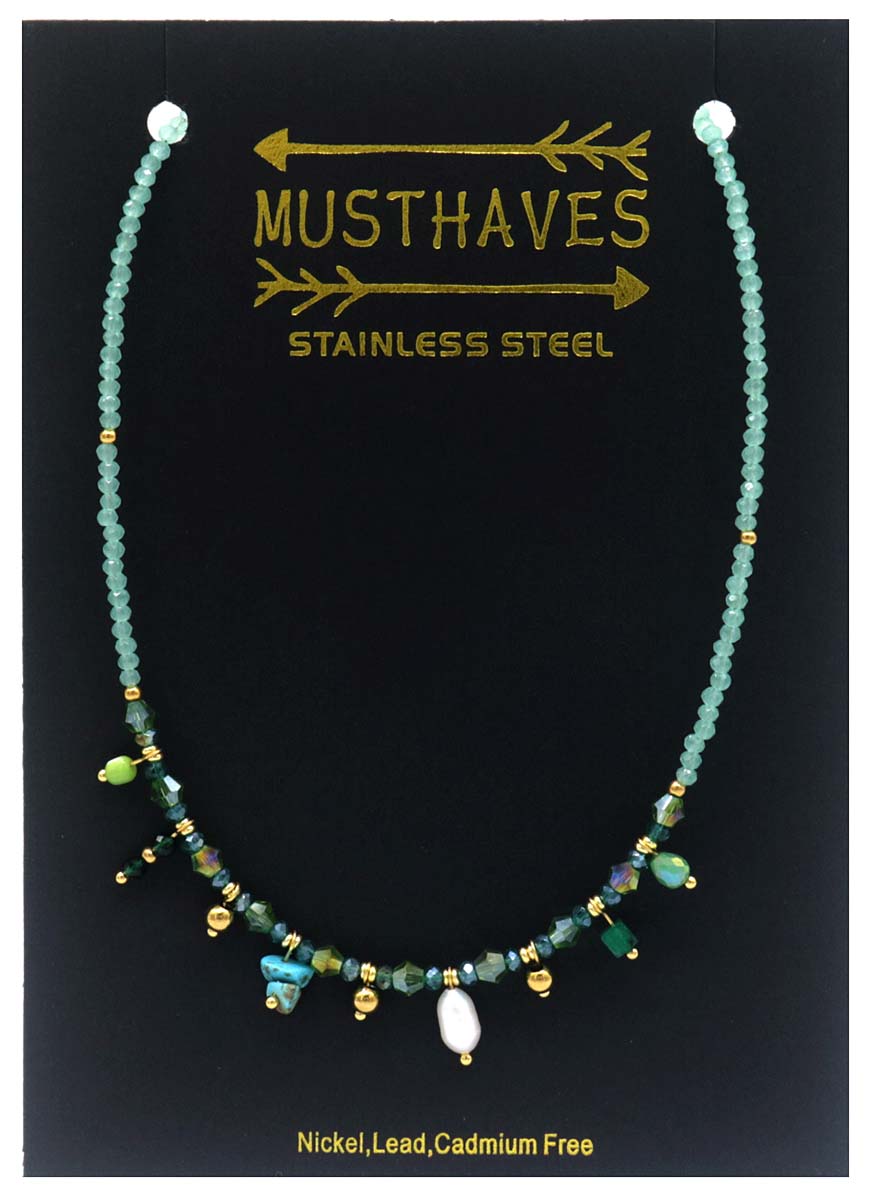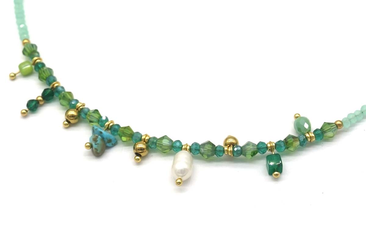 Produktinformationen "D-B21.2 N221-327 S. Steel Necklace Glassbeads Blue 39-44cm"
