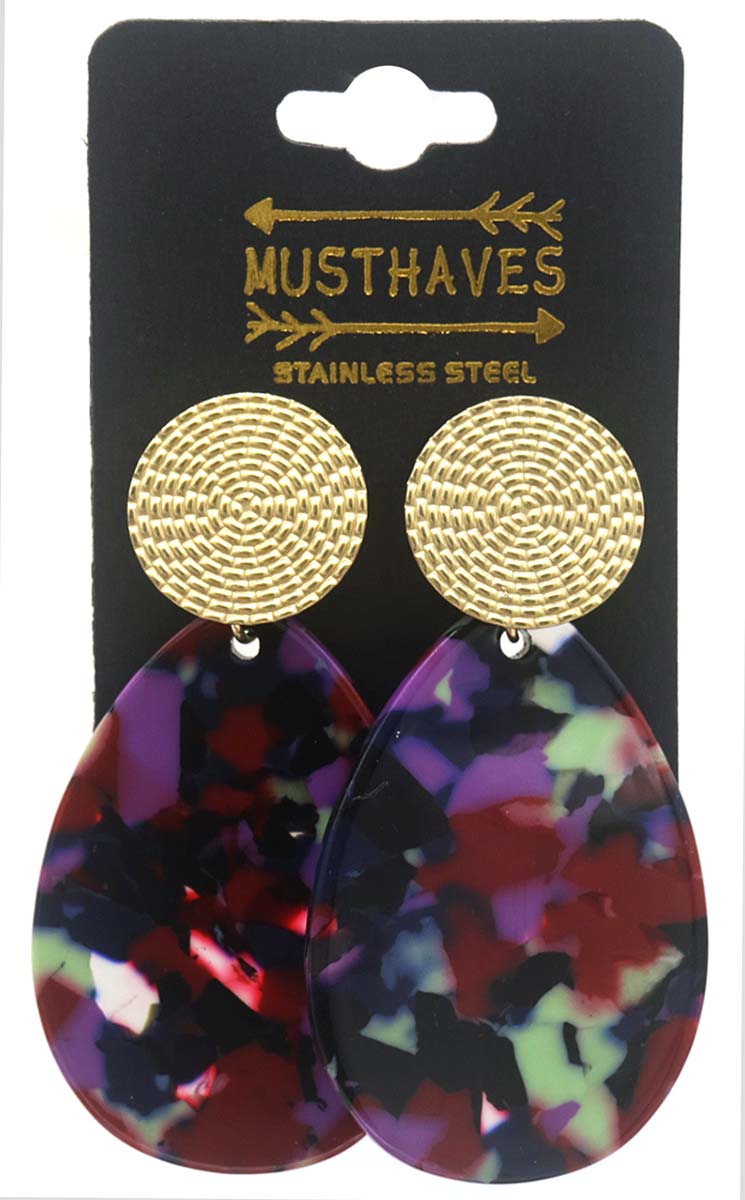D-E6.4 E221-536 No. 7 S. Steel Earrings 6.5x3.5cm Multi