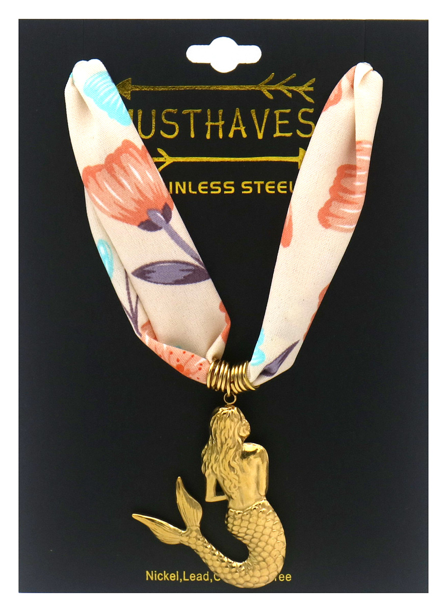 D-F2.2 N098-037 Fabric Necklace S. Steel Mermaid 40-45cm