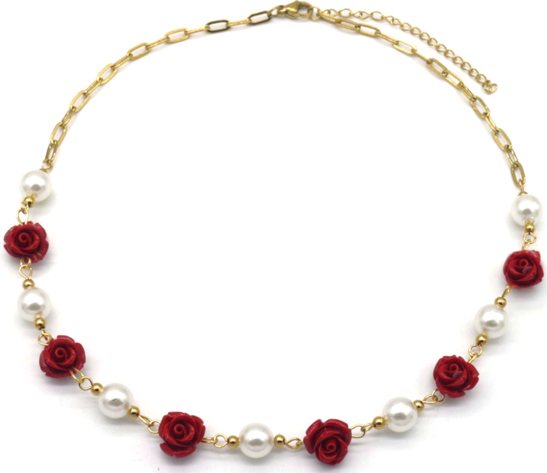 E-B3.3 N823-007G S. Steel Necklace Flowers