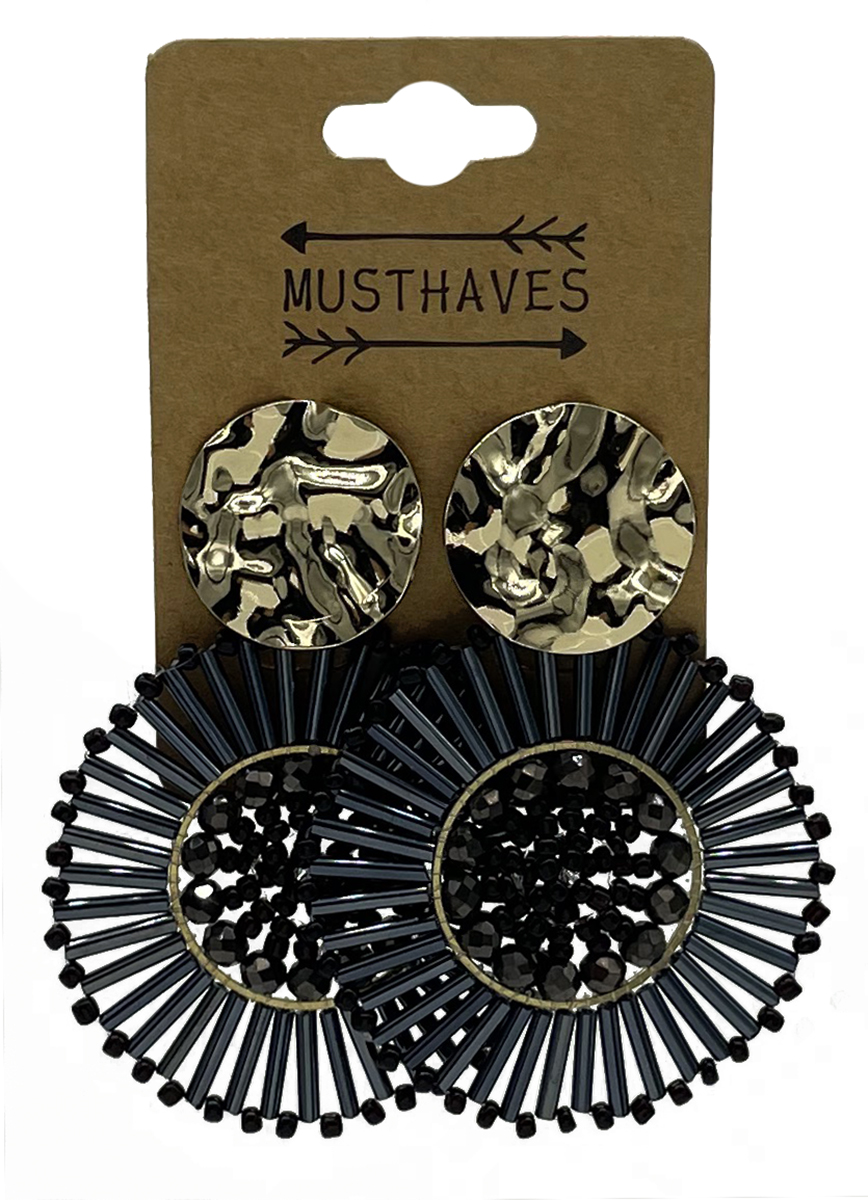 E-B6.5 E2591-130-4 Earrings Faceted Glass Beads 6x4.5cm Black