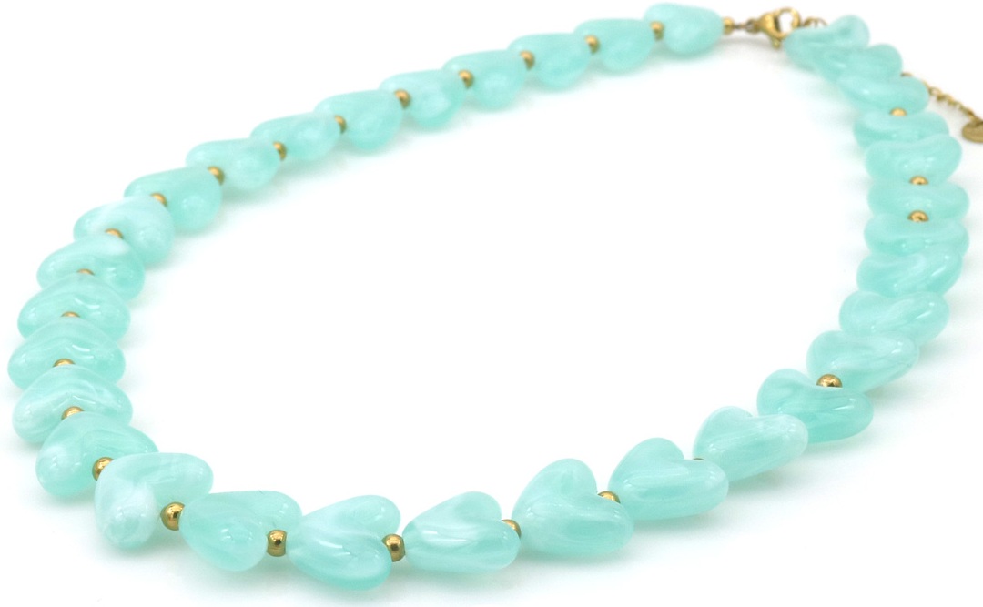 E-B9.1 N1144-009-7 S. Steel Necklace Hearts 40-45cm Blue