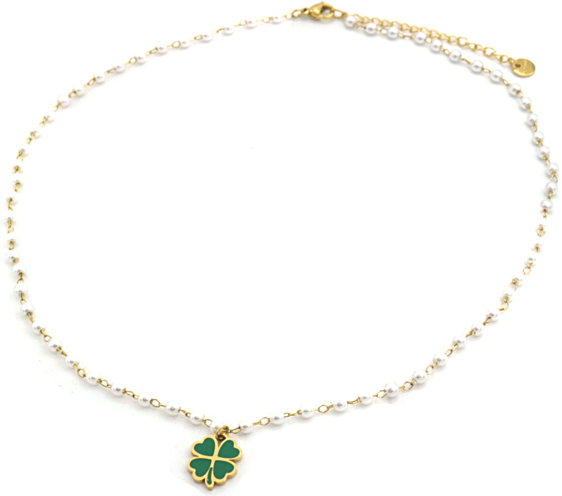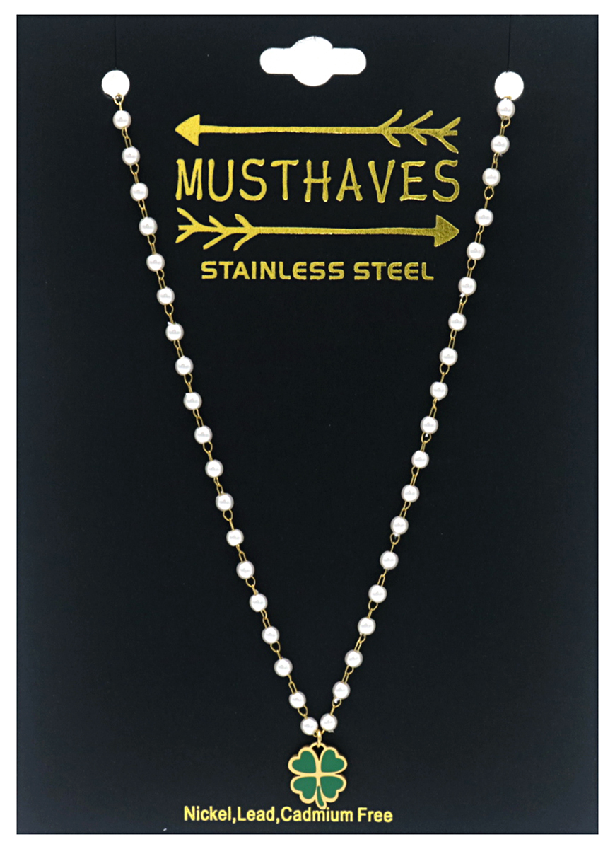 E-E9.3 N835-022G S. Steel Necklace Clover