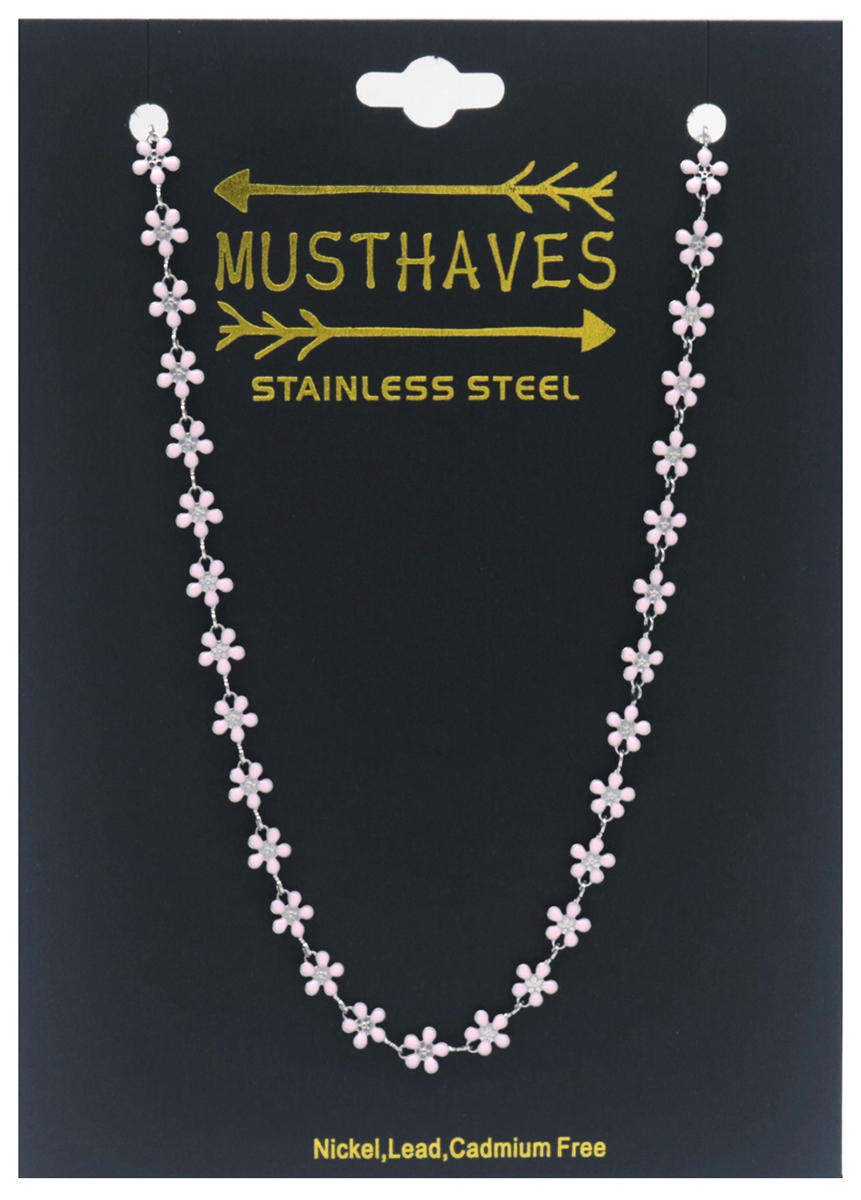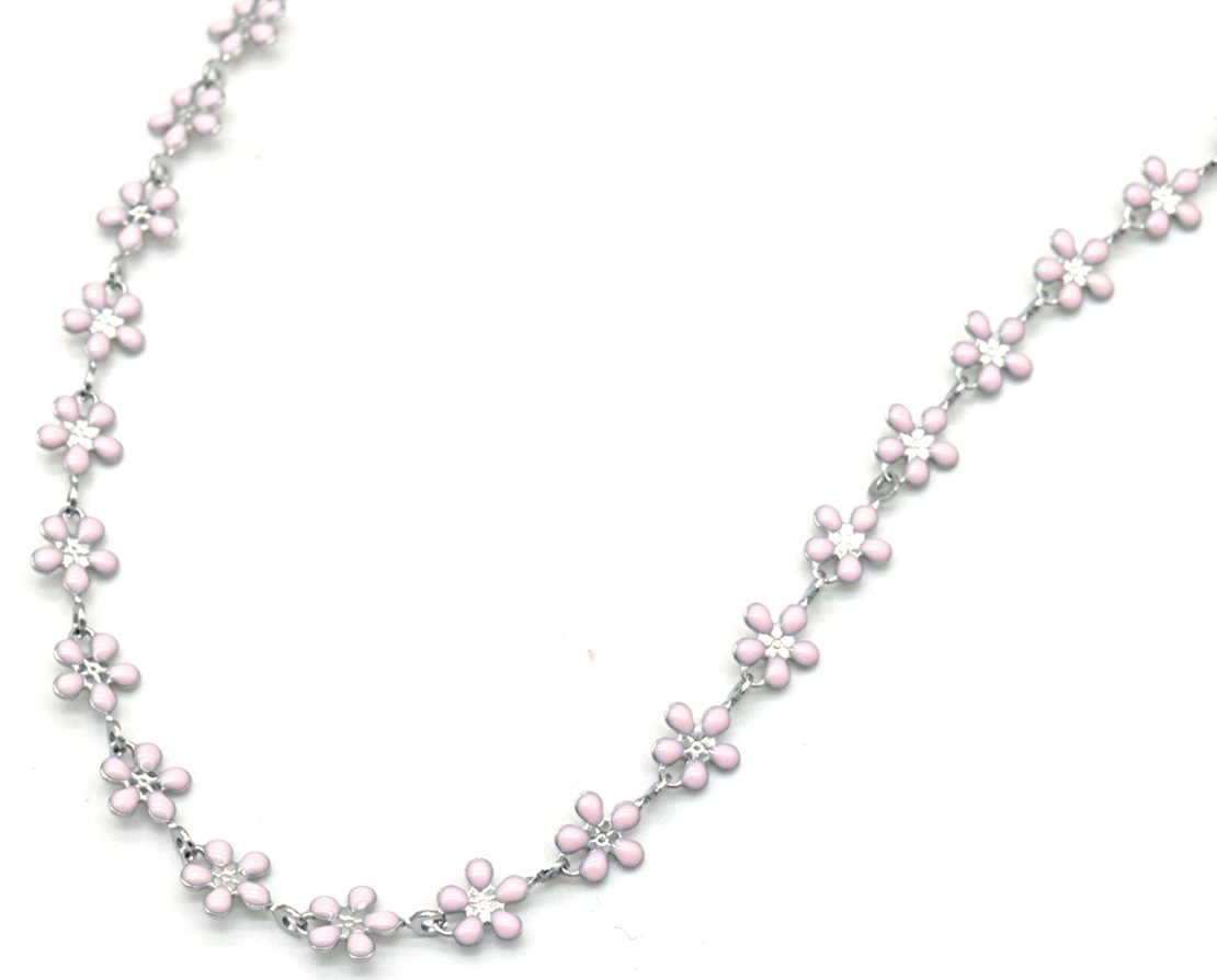 E-F8.1 N835-024S S. Steel Necklace Flowers Pink
