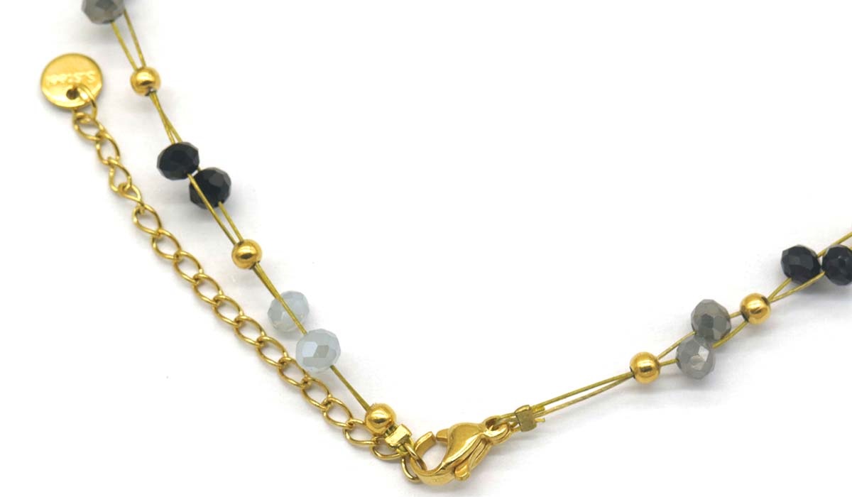 F-D7.4 NBE221-001 No. 7 S. Steel Necklace Pearls Black