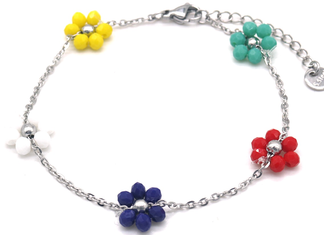 Produktinformationen "F-E17.2 B835-033S S. Steel Bracelet Flowers Multi 16-21cm"