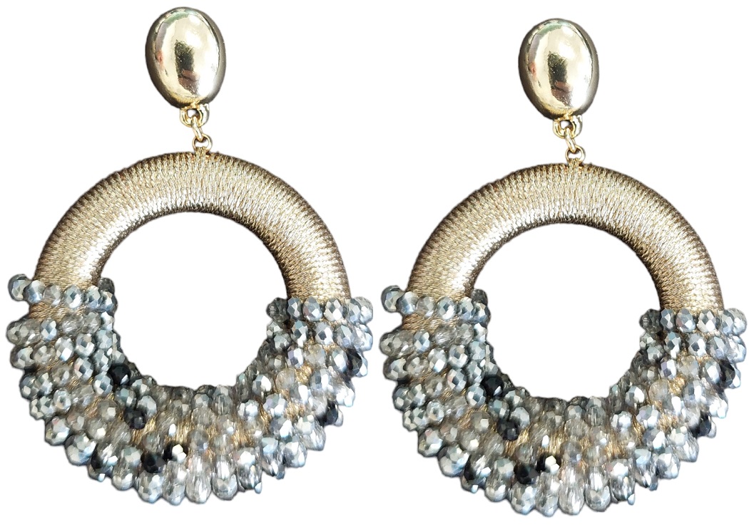 F-F1.1 E827-005 No.2 Crystal Beads Earrings 5x4 cm Grey