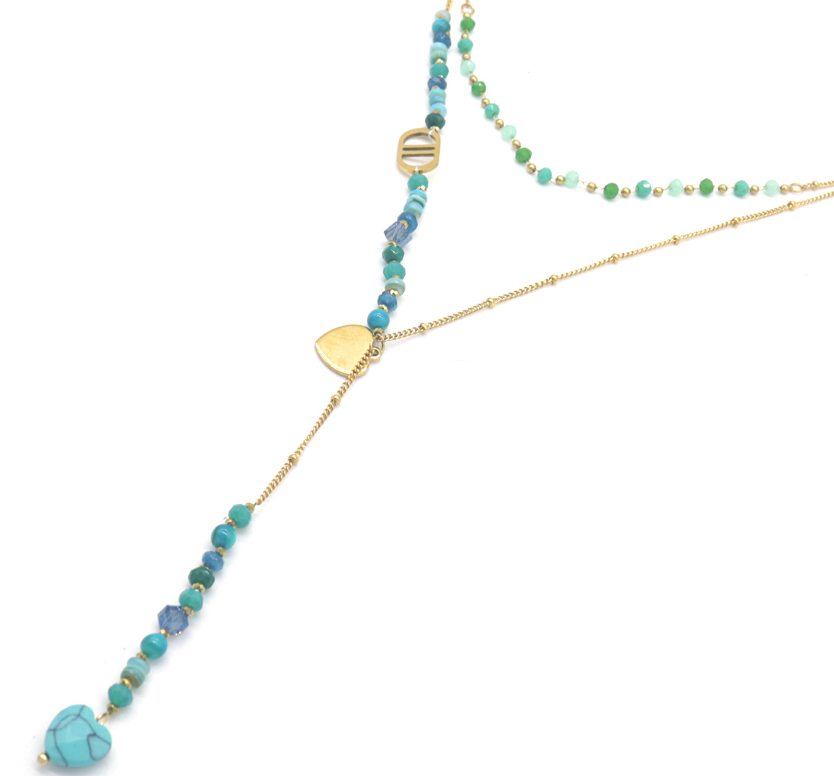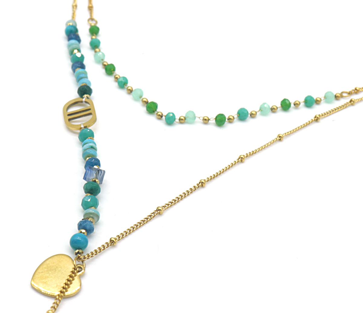 F-F16.1 N221-323G No. 1 S. Steel Necklace Stones Blue