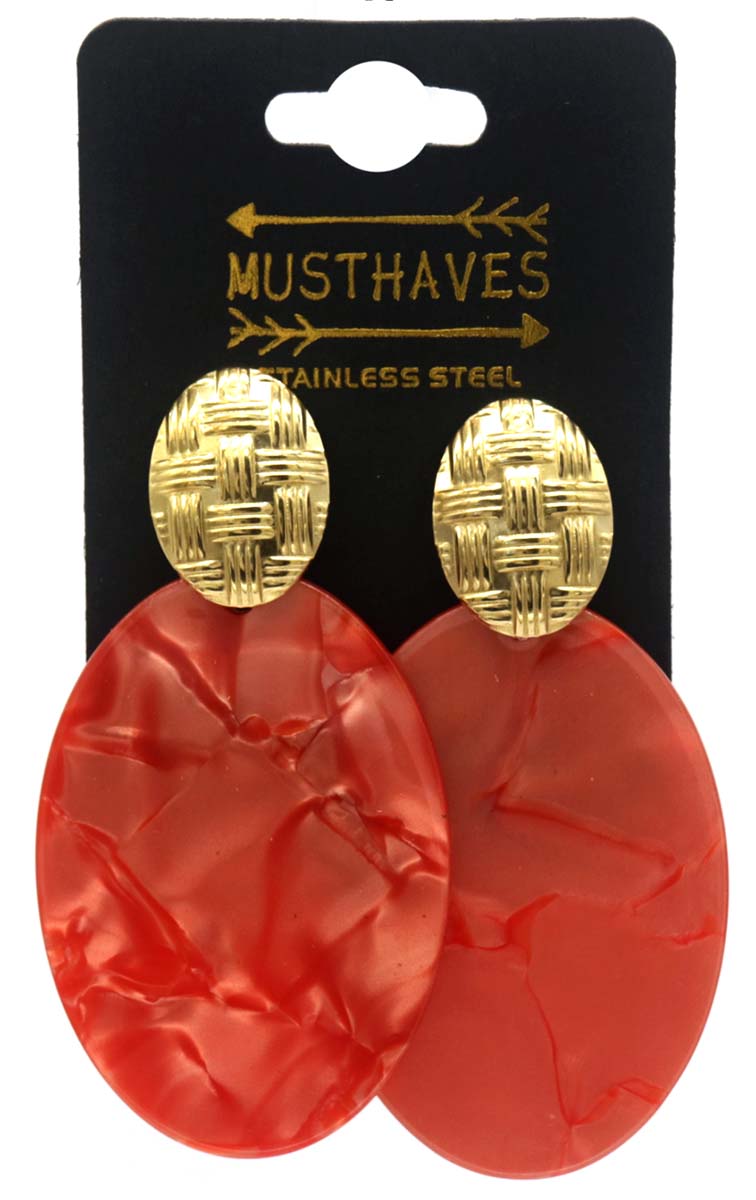 Produktinformationen "F-F5.4 E221-529 No. 2 S. Steel Earrings 6.5x3.5cm Red"