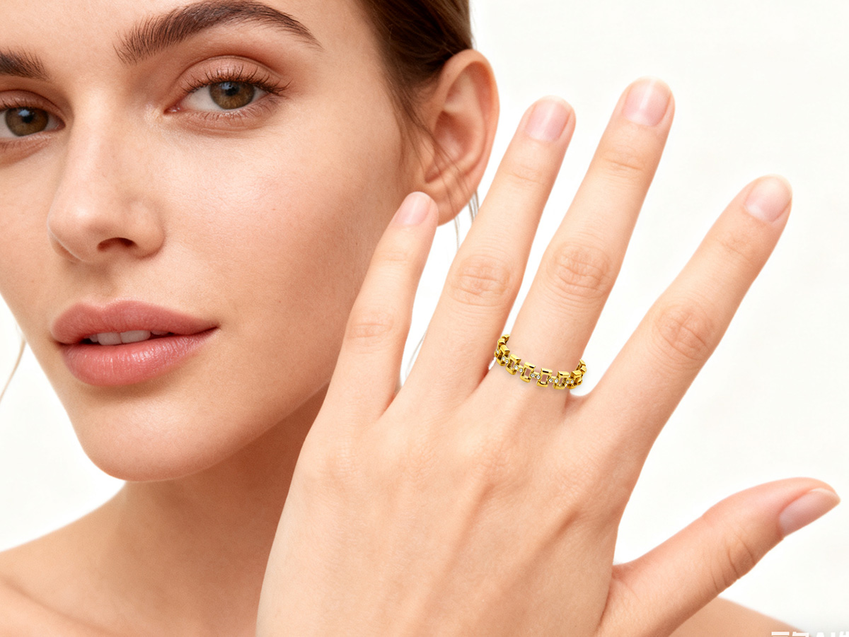 Wir stellen Ihnen den Edelstahlring G-B18.3 R2591-079G mit verstellbaren Kristallen vor – ein atemberaubendes Schmuckstück, das Eleganz und Vielseitigkeit mühelos vereint. Dieser aus hochwertigem Edelstahl gefertigte Ring zeichnet sich durch ein elegantes und modernes Design aus und ist somit ein perfektes Accessoire für jeden Anlass.