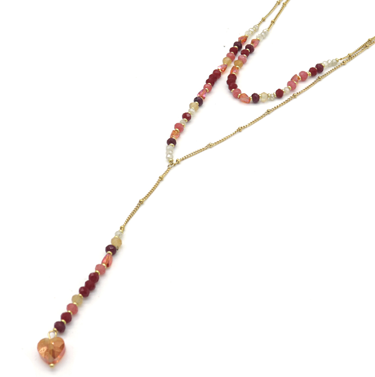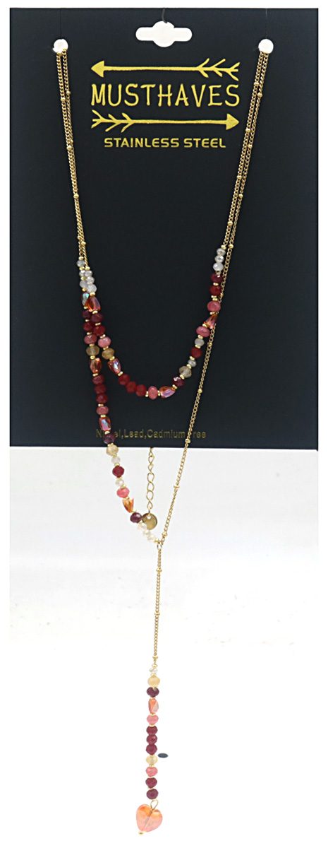 G-D15.1 N221-323G No. 3 S. Steel Necklace Stones Red