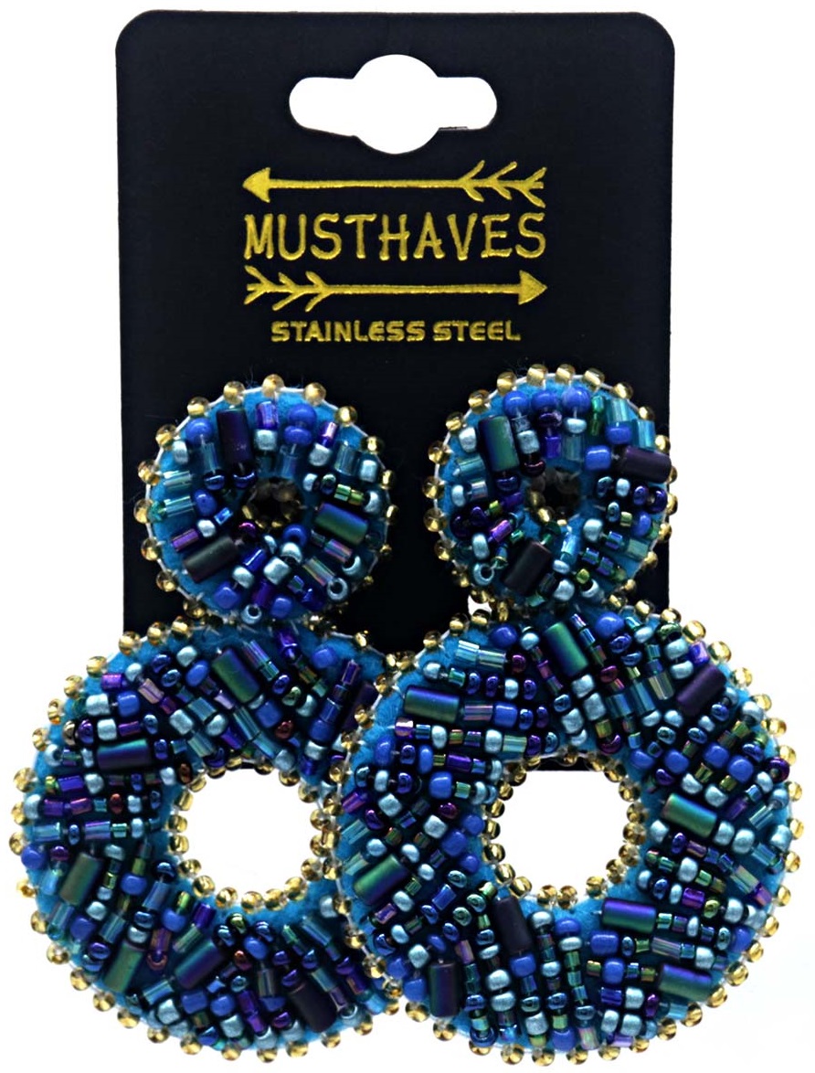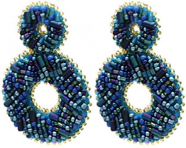 H-A15.3 E221-502-3 S. Steel Earring Glassbeads 6cm Blue