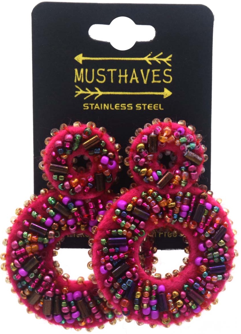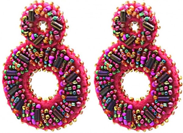 H-B23.1 E221-502-1 S. Steel Earring Glassbeads 6cm Fuchsia