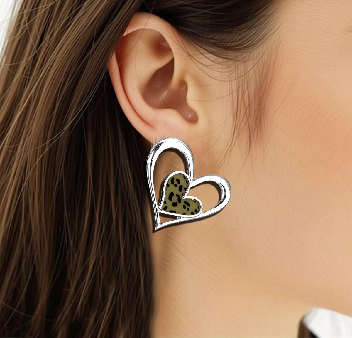 H-B4.2 E2591-161S Fashion Earrings Hearts Leopard 3.5cm