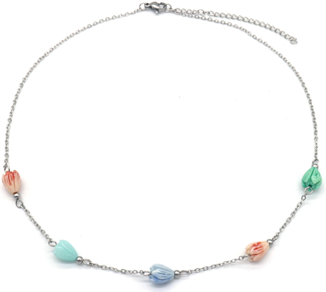 H-C9.3 N823-001S S. Steel Necklace Flowers