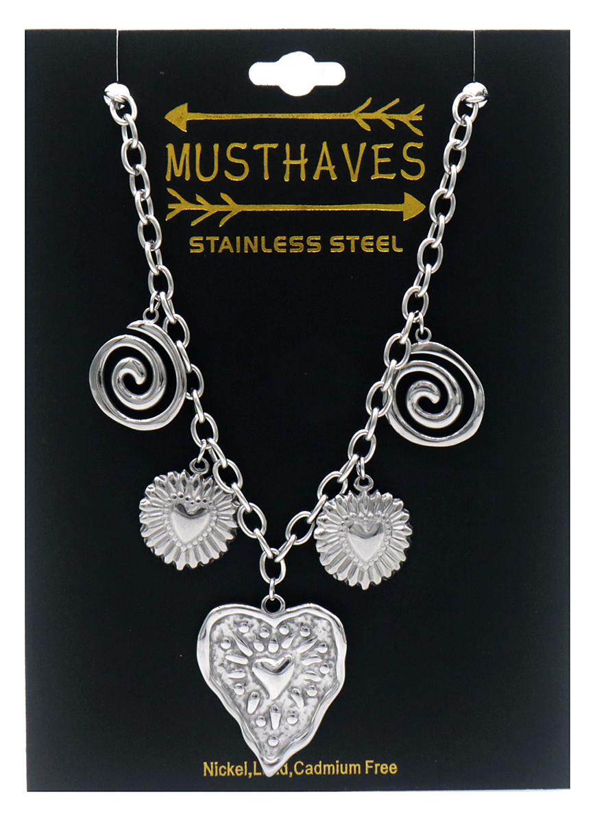 Wir stellen Ihnen die Halskette H-E14.2 N1160-001S aus Edelstahl vor, ein atemberaubendes Stück, das Ihre Accessoire-Sammlung aufwertet. Diese exquisite Halskette verfügt über eine einzigartige Kombination aus Herzen und Wirbeln, wunderschön gefertigt aus hochwertigem, silberfarbenem Edelstahl. Mit einer verstellbaren Länge von 40–45 cm bietet es Vielseitigkeit für jeden Ausschnitt und jedes Outfit.