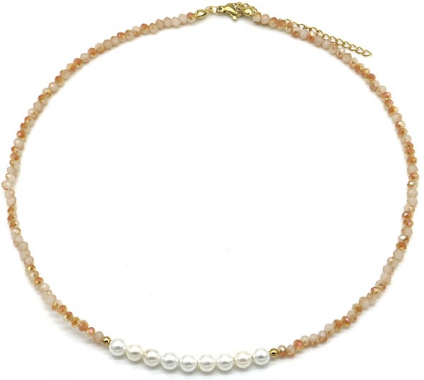 H-F17.4 N1659-008 Pearls Faceted Glassbeads 39-44cm Brown