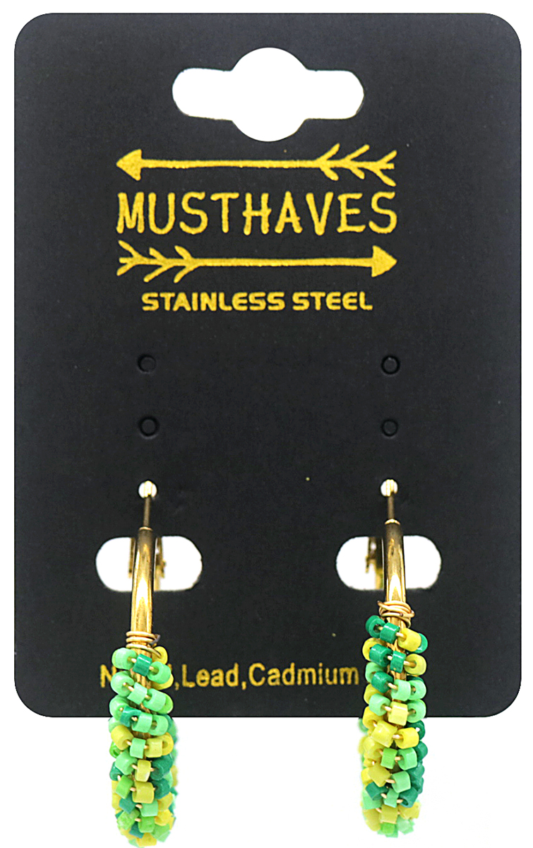 Produktinformationen "H-F5.5 E221-341 S. Steel Earrings Glassbeads 3.5cm Green"